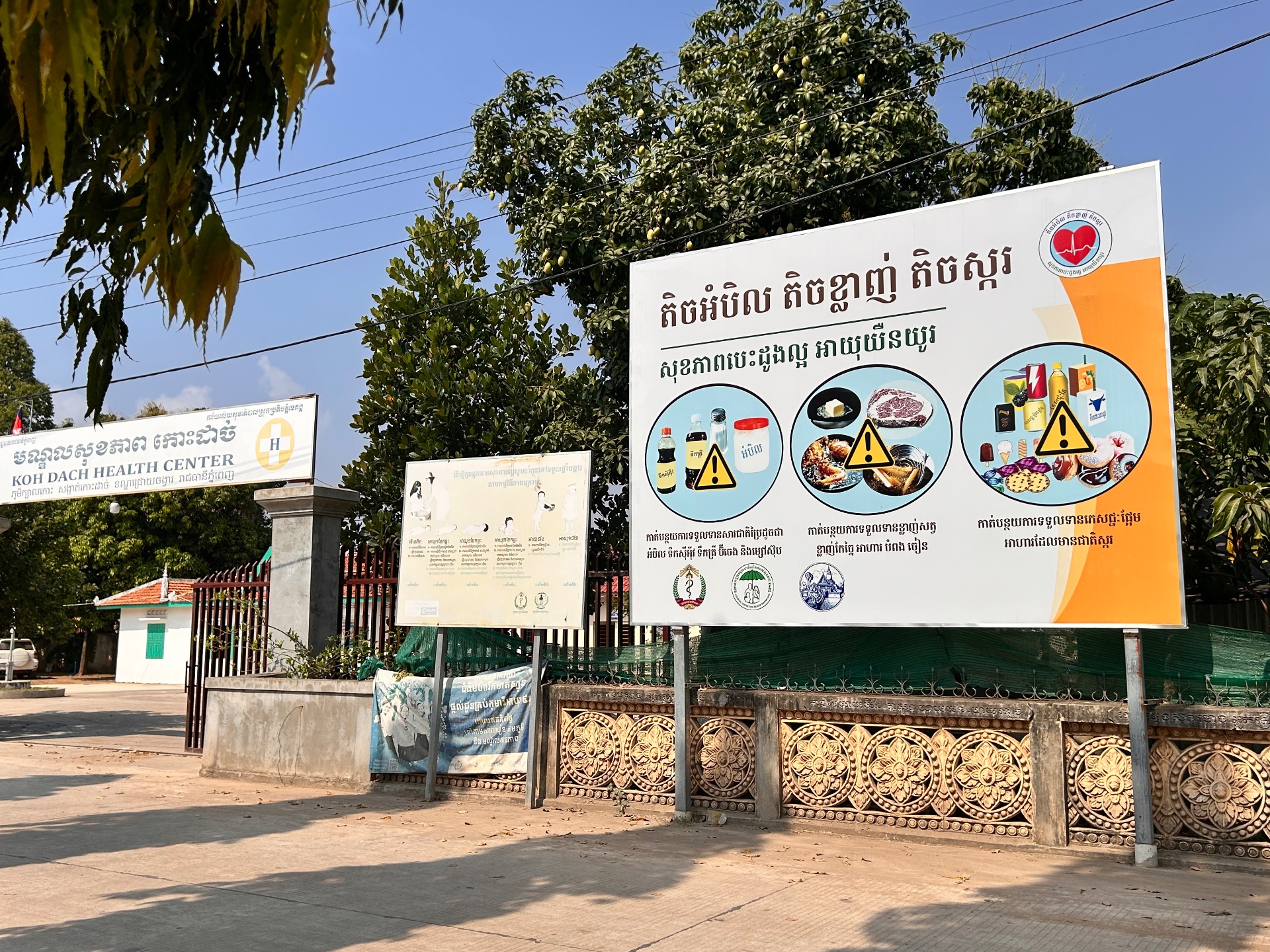 De Cambodjaanse overheid probeert leefstijl en gezondheid te stimuleren via informatieborden en publieke campagnes. (Zie foto). Of deze aanpak daadwerkelijk effect heeft, blijft de vraag. Gezondheidszorg breed toegankelijk maken is een uitdaging in een land waar veel dorpen afgelegen liggen en onderwijs niet altijd vanzelfsprekend is.