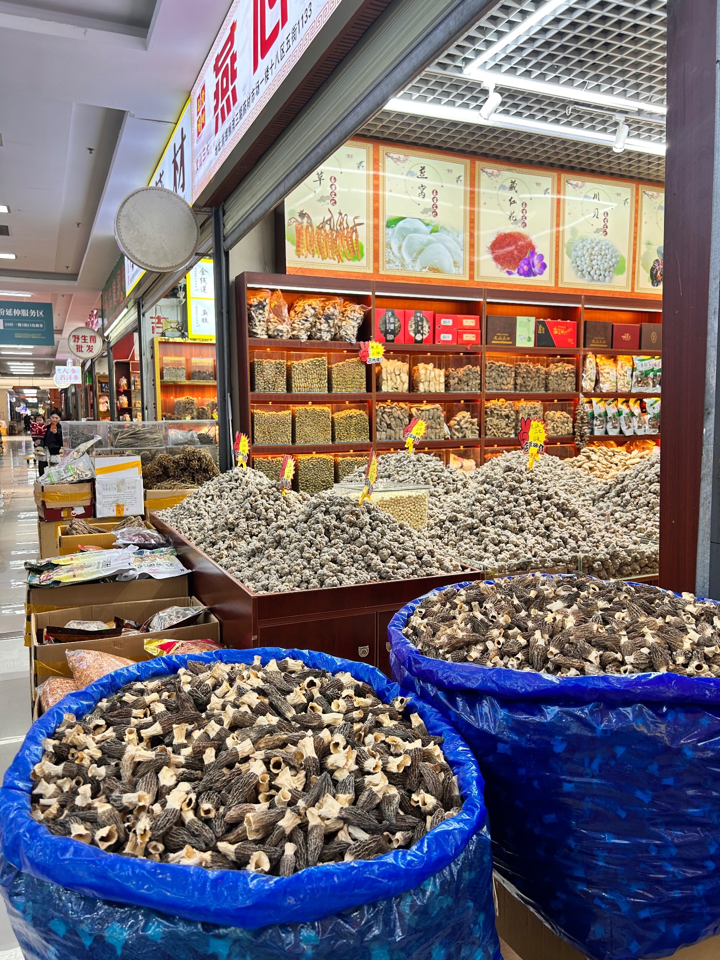 Ik bezoek de traditionele Chinese geneeskunde-groothandelsmarkt in een buitenwijk van Kunming: een enorm complex van 270.000 m², verspreid over drie etages vol Chinese kruiden. Het is mega indrukwekkend om dit alles in het echt te zien en niet slechts op een plaatje van een website.