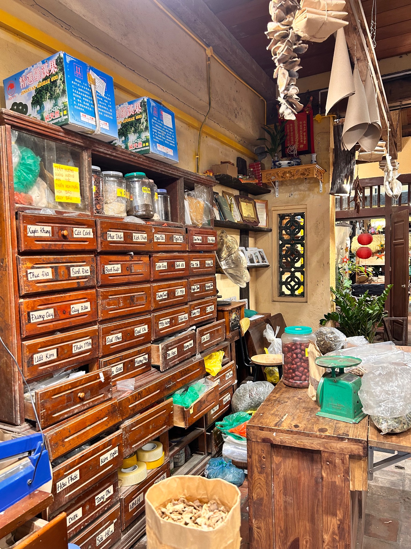 Er zijn kant-en-klare zakjes te koop met onder andere gojibessen, kamille, chen pi (sinaasappelschil) en da zao (Chinese zoete dadels), bekend om hun ondersteunende werking op onder meer de spijsvertering. Daarnaast zijn er kant en klare kruidentheeën tegen slecht slapen, spijsverteringsproblemen en menstruatieklachten. Dit maakt de winkel tot een prima laagdrempelige eerste kennismaking met traditionele geneeskunde. Zowel toeristen als Hanoianen weten de weg hierheen te vinden, waarbij locals vaak kruidenformules kopen die specifiek op hun klacht zijn afgestemd – iets wat is aanbevolen voor een meer gerichte behandeling.